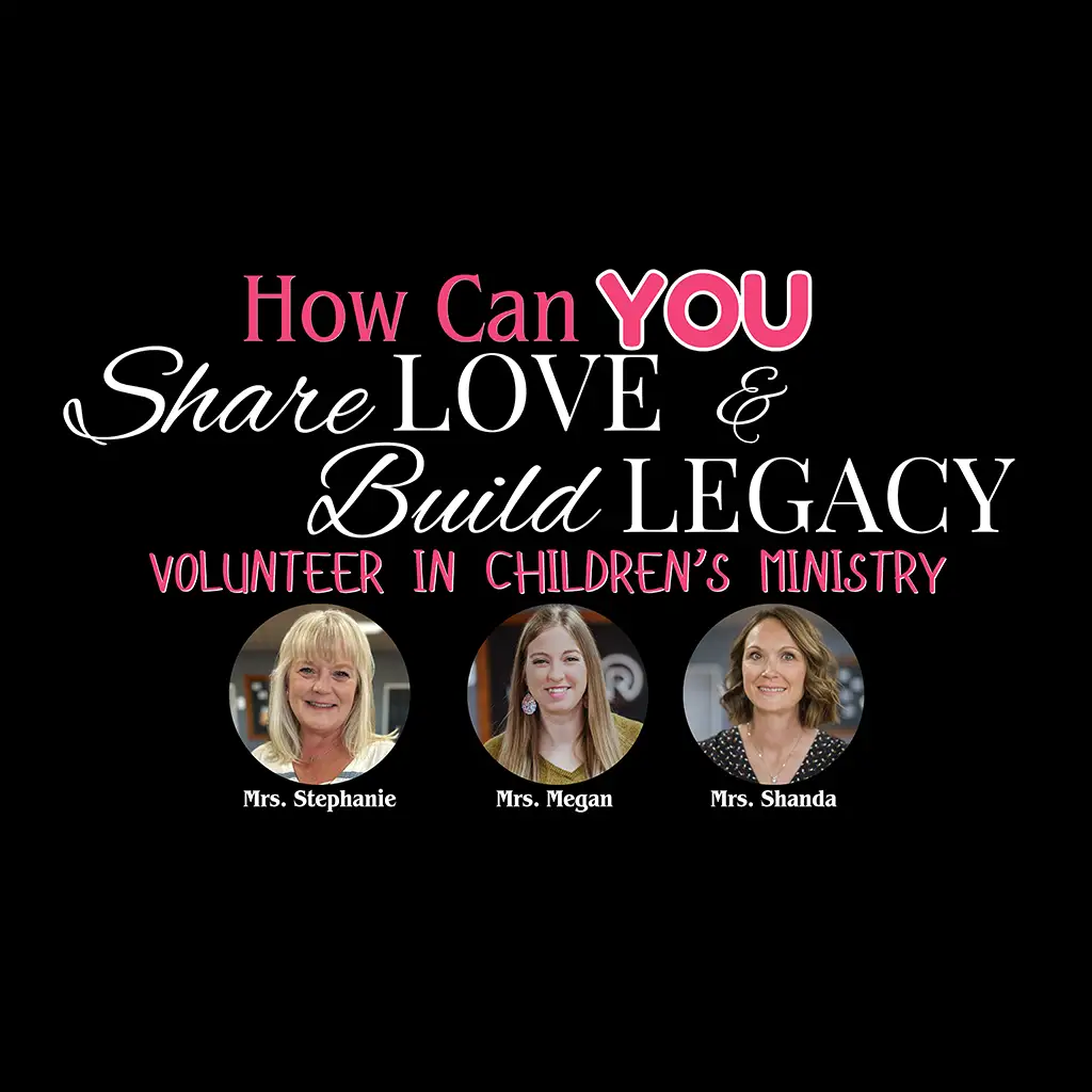How can YOU share love and build legacy? By pouring into our children you will help shape the future. Help be the change you want to see by signing up to volunteer in our nursery & children’s ministry. You can see Megan, Stephanie or Shanda at the Love & Legacy booth for more information.